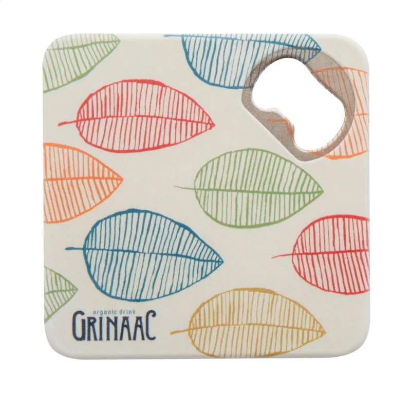 Műanyag poháralátét, sörnyitóval és csúszásmentes aljjal.