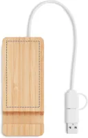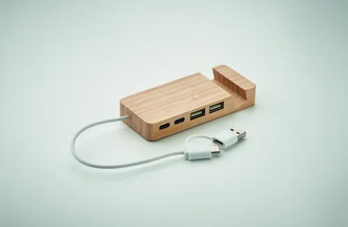 4 portos USB elosztó hub bambusz tokban. Kimenet: 2 x USB-A és 2 x C-típusú. Bemenet: 2 az 1-ben C-típusú és USB-A. Kábel hossza: 20 cm.