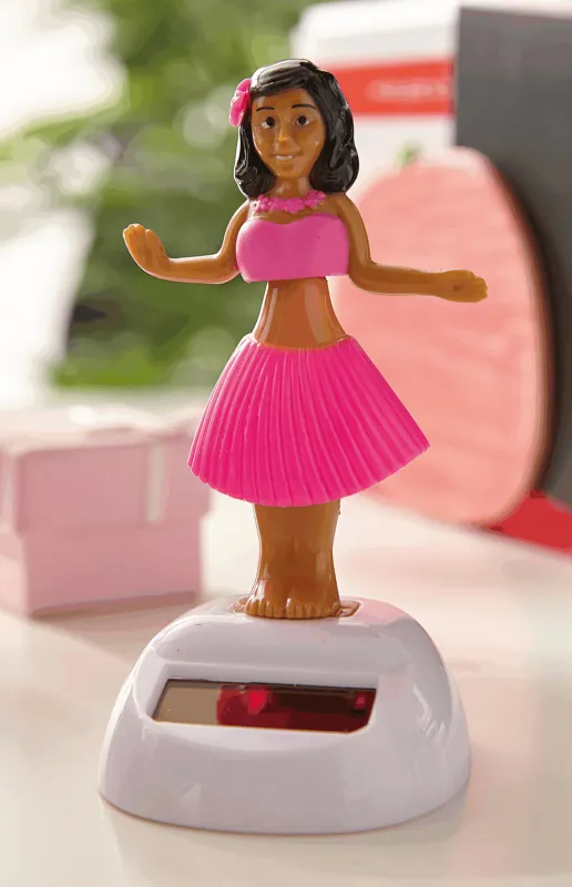 HULA napelemes táncoló figura csípőjét mozgatja amint a napelem feltöltődik
