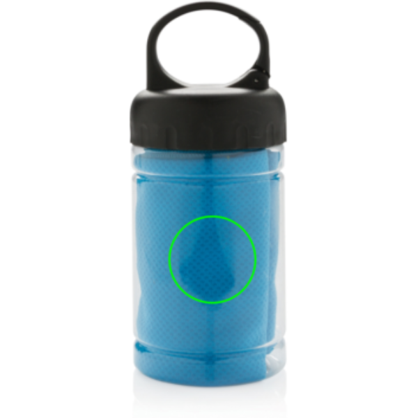 Mikroszálas, teljes mértékben vegyszerektől mentes, hűsítő törölköző. 98%-ban ellenáll a napsugaraknak és 50+-os UV sugárzás elleni védelmet biztosít. A hűsítő hatás a tartóba öntött hideg vízzel érhető el. Ez a tartó PP anyagból készólt ABS fedővel és karabinerrel, utóbbival könnyen magával viheti bárhová. 77 x 30cm.