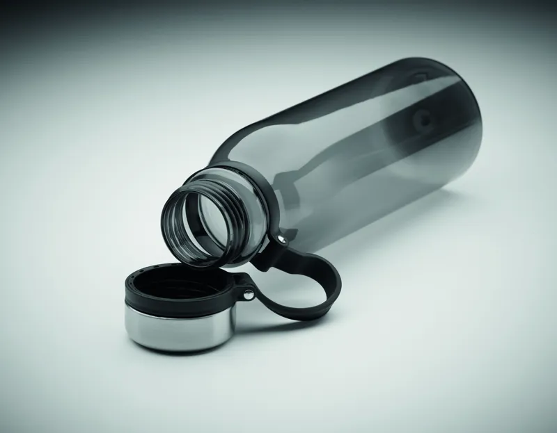 RPET kulacs rozsdamentes acél kupakkal, a könnyű szállítást biztosító TPR gumi pánttal. BPA mentes. Szivárgásmentes. Űrtartalom: 780 ml. Nem alkalmas szénsavas italokhoz.