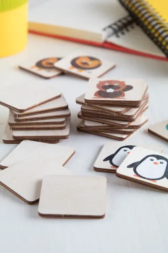 Rétegelt nyírfából készült memóriajáték tematikus figurákkal. 24 lapka (40×40 mm). Az ár tartalmazza az emblémázás költségét, 1 színnel nyomva az összes lapka hátoldalán. Minimális rendelési mennyiség: 50 db.