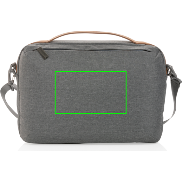 "Elegáns megjelenésű, minimalista kialakítású laptoptáska. A fő rekeszben 15,6""-es laptoprekesz és két nyitott hálós zseb található. Elülső cipzáras zsebbel. Tetején PU fogantyú. A külső anyag és a bélés újrahasznosított poliészterből készült. AWARE™ nyomjelzővel, amely igazolja az újrahasznosított anyagok valódi használatát. Minden táska 8,75 fél literes PET palackot hasznosít újra. Minden eladott Impact termék után 2%-kal támogatjuk a Water.org nonprofit szervezetet."