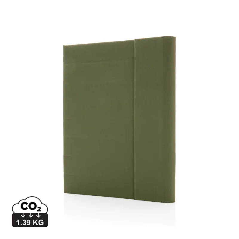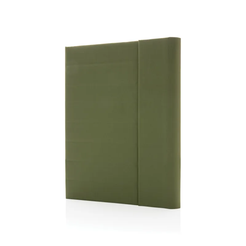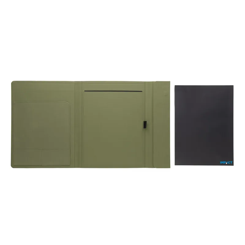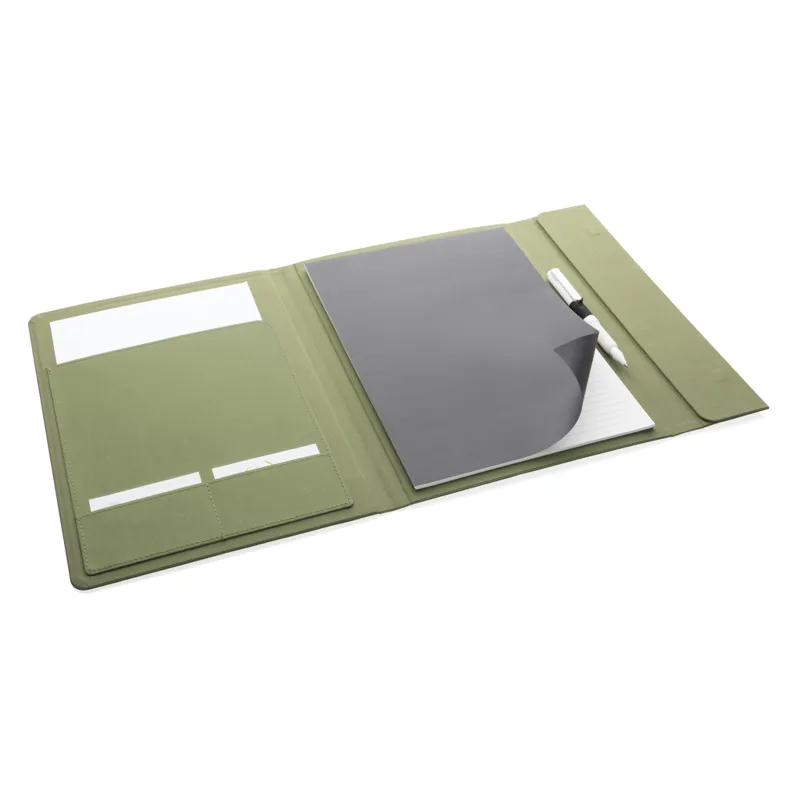 A4-es Aware™ újrahasznosított PET mappa mágneses zárral gondoskodik a munkához szükséges eszközök rendszerezéséről. Belsejében 1 nagyobb zsebbel, 2 további zseb és egy tollhurok. FSC újrahasznosított papír jegyzettömbbel. A jegyzettömb 20 lap krémszínű, vonalas, 70 gm/s újrahasznosított papírt tartalmaz. Külseje és belseje 100% újrahasznosított poliészter. AWARE™ nyomjelzővel, amely igazolja az újrahasznosított anyagok valódi használatát. Minden termék 3,2 fél literes PET palackból készült. Minden eladott Impact termék után 2%-kal támogatjuk a Water.org nonprofit szervezetet. PVC-mentes.