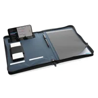 Ez az A4-es Impact AWARE™ deluxe 300D tech mappa cipzárral extra kifinomultságot ad munkájához. Tartsa egy helyen a fontos dokumentumokat, kártyákat és jegyzeteket. A4-es méret egy vonalas, 64 gm/2, 20 oldalas, újrahasznosított papírból készült jegyzettömbbel. Belsejében található 1 telefon méretű zseb, egy telefontartó, tollhurok és 2 névjegykártya-tartó. AWARE™ nyomjelzővel, amely igazolja az újrahasznosított anyagok valódi használatát. Minden termék 8 fél literes PET palackból készült. Minden eladott Impact termék után 2%-kal támogatjuk a Water.org nonprofit szervezetet. PVC-mentes.