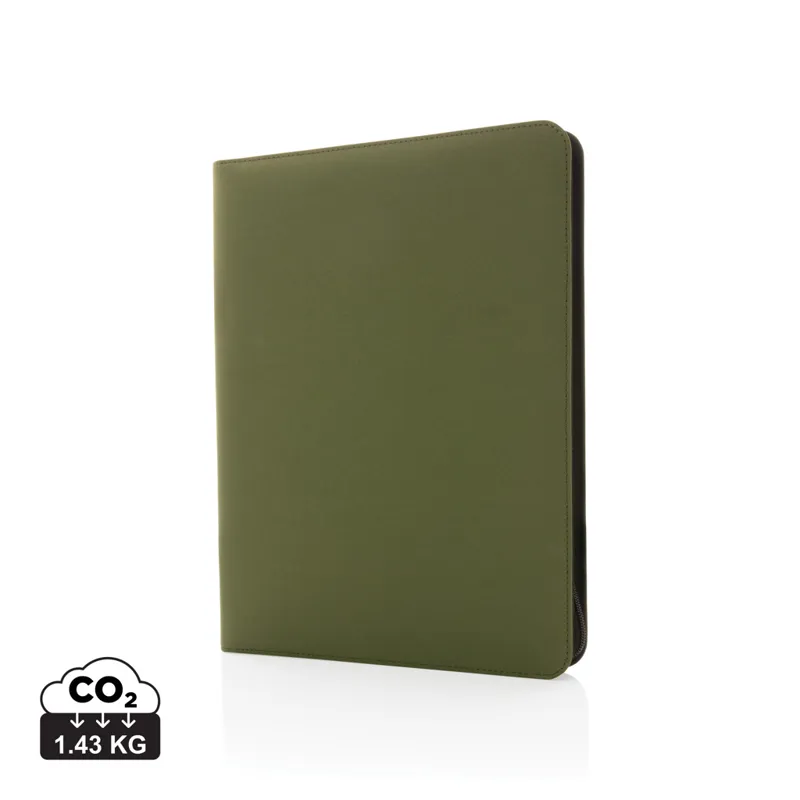 Ez az A4-es Impact AWARE™ deluxe 300D tech mappa cipzárral extra kifinomultságot ad munkájához. Tartsa egy helyen a fontos dokumentumokat, kártyákat és jegyzeteket. A4-es méret egy vonalas, 64 gm/2, 20 oldalas, újrahasznosított papírból készült jegyzettömbbel. Belsejében található 1 telefon méretű zseb, egy telefontartó, tollhurok és 2 névjegykártya-tartó. AWARE™ nyomjelzővel, amely igazolja az újrahasznosított anyagok valódi használatát. Minden termék 8 fél literes PET palackból készült. Minden eladott Impact termék után 2%-kal támogatjuk a Water.org nonprofit szervezetet. PVC-mentes.