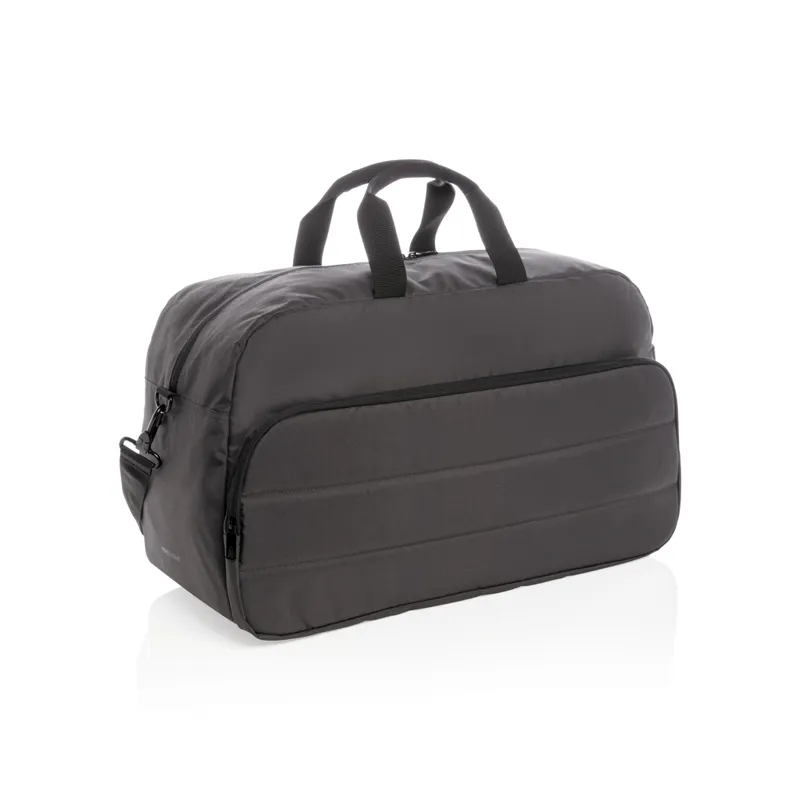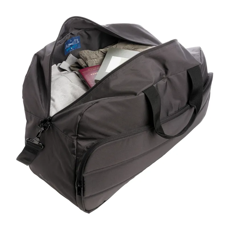 Átláthatóan a fenntarthatóságért, bizonyítottan! Az Impact kollekció termékeinek anyagába speciális AWARE™ nyomjelző kerül ún. blokklánc technológiával ezáltal a valóban újrahasznosított összetevők használata és a kevesebb víz felhasználása garantált! Takarítson meg vizet és használjon valóban újrahasznosított anyagot: a termék megvásárlásával 27 liter víz megtakarításához és 45 műanyag palack újrahasznosításához járul hozzá. Emellett a víz megtakarításának jegyében minden eladott Impact termék után 2%-kal támogatjuk a Water.org nonprofit szervezetet.AWARE™ hétvégi táska modern kialakítással. Tágas főrekesszel, két hálós zsebbel valamint egy elülső cipzáras zsebbel belsejében két további zsebbel és két tolltartó hurokkal. Külseje és belseje egyaránt 100% AWARE™ újrahasznosított poliészterből. PVC-mentes. A megtakarítási adatok az ún. Textile Exchange megbízható LCA adatforrásán alapulnak.