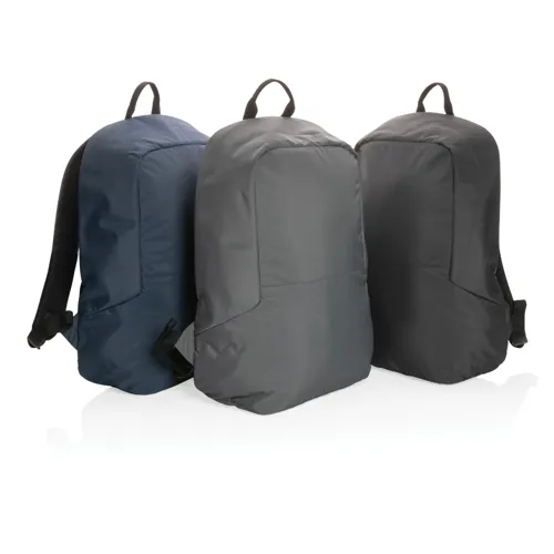 "Közlekedjen kedvére miközben mindennapi kellékeit biztonságban tudhatja ebben az Impact AWARE™ RPET standard lopásbiztos hátizsákban! 15,6""-es párnázott laptopzsebbel. Könnyű és tartós hátizsák kompakt ugyanakkor minimalista kialakítással. Belsejében egy RFID zsebbel. A bőrönd húzójára akasztható. Külseje 300D újrahasznosított poliészter, belseje 150D újrahasznosított poliészter. AWARE™ nyomjelzővel, amely igazolja az újrahasznosított anyagok valódi használatát. Minden táska 19,9 fél literes PET palackot hasznosít újra. Minden eladott Impact termékután 2%-kal támogatjuk a Water.org nonprofit szervezetet. PVC-mentes."