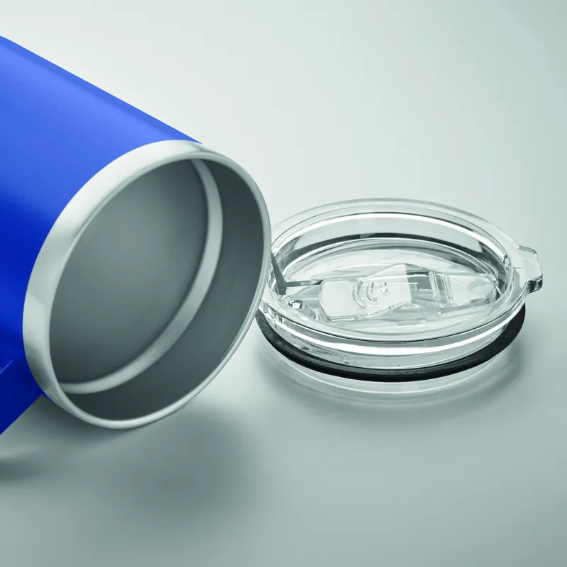 Duplafalú, újrahasznosított rozsdamentes acél (90% újrahasznosított rozsdamentes acél, 10% rozsdamentes acél) bögre csúsztatható ivónyílással ellátott fedéllel. Űrtartalom: 300 ml.