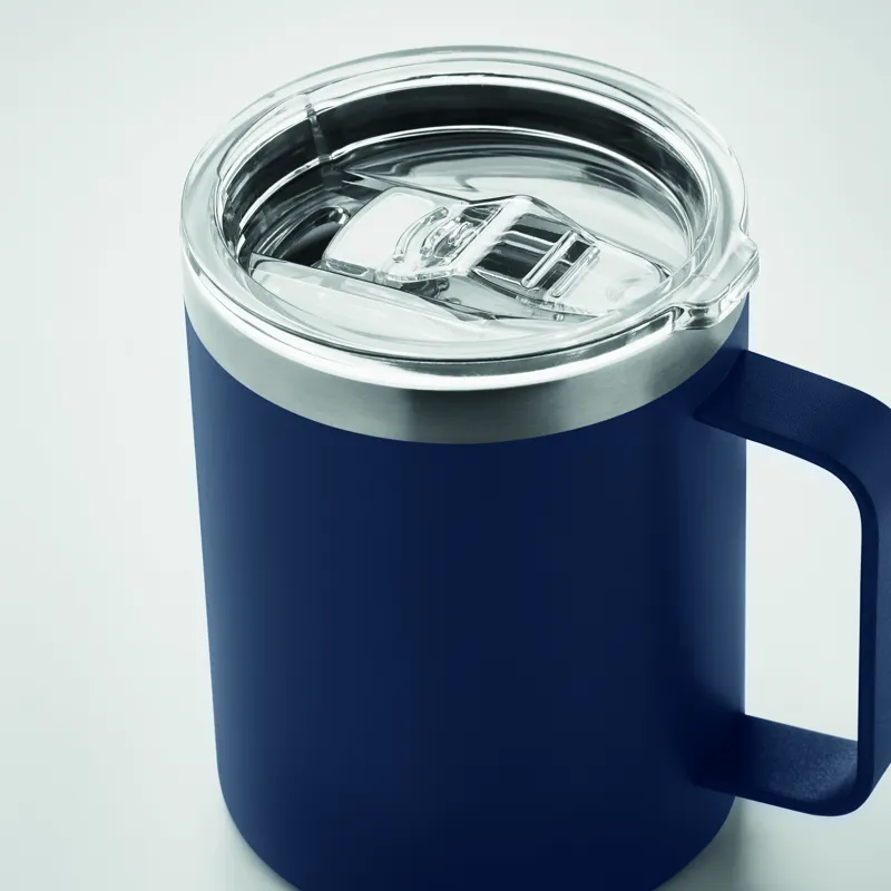 Duplafalú, újrahasznosított rozsdamentes acél (90% újrahasznosított rozsdamentes acél, 10% rozsdamentes acél) bögre csúsztatható ivónyílással ellátott fedéllel. Űrtartalom: 300 ml.