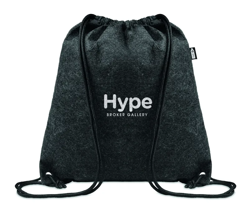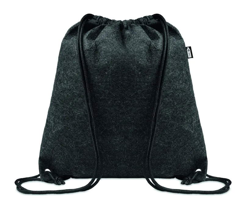 RPET filcből készült húzózsinóros táska poliészter zsinórral.