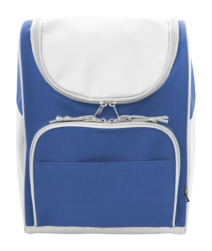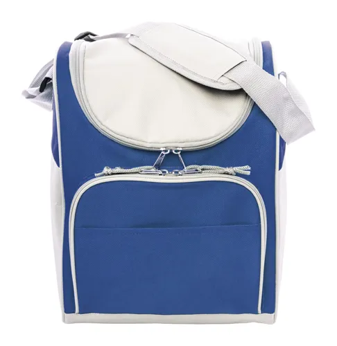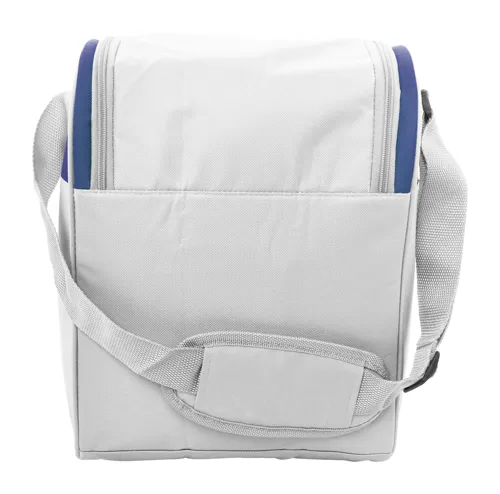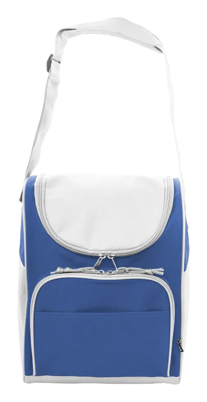RPET hűtőtáska alumínium béléssel. 2 cipzáras rekesszel, kis elülső zsebbel és állítható vállpánttal. 600D RPET poliészter, megkülönböztető RPET címkével.