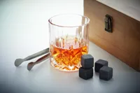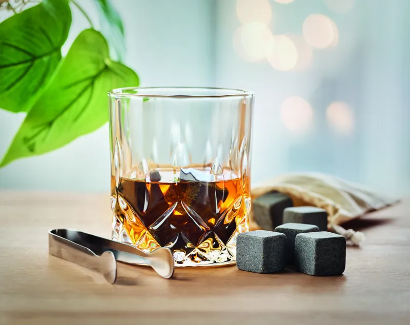 Luxus pohárkészlet bambusz díszdobozban whiskyhez, ginhez, mojitóhoz vagy más italokhoz. Tartalmaz 2 poharat (300ml), 8 db többször használható kő kockát, pamut tárolózsákot, csipeszt. A bambusz természetes anyag, termékenként szín- és méretbeli eltérések jelentkezhetnek, ami befolyásolhatja a dekoráció végső eredményét.