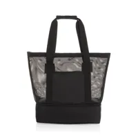 "A praktikum és a fenntarthatóság tökéletes kombinációja. A 100% újrahasznosított RPET anyagból készült, tartós PEVA béléssel ellátott, stílusos fekete táska mindennapi használatra készült. Tágas cipzáras rekesze légáteresztő hálós anyaggal van bélelve, míg a külső nyitott ujjzseb könnyű hozzáférést biztosít az alapvető dolgokhoz. Két erős hevederes fogantyúval, tépőzárral a kényelem érdekében. Külön hűtőrekeszt is tartalmaz ezüstszürke PEVA béléssel, amely tökéletesen alkalmas az ételek hűvösen és frissen tartására. Bevásárláshoz, piknikezéshez vagy strandoláshoz ideális, a hűtőrekeszt kifejezetten a rekeszes élelmiszerek tárolására tervezték, így rendezetten és hűtve tartja az árucikkeket.Újrahasznosított poliészterből készült, AWARE™ nyomjelzővel. Minden eladott AWARE™ termék után 2%-kal támogatjuk a Water.org nonprofit szervezetet. PVC-mentes.