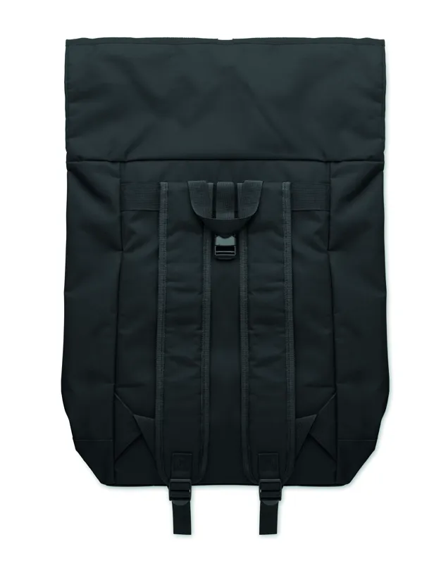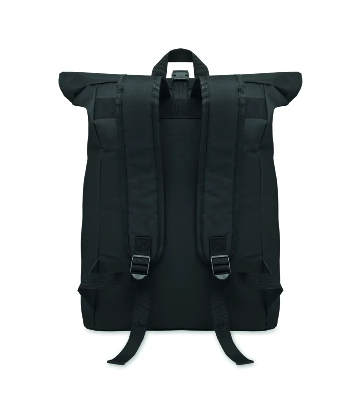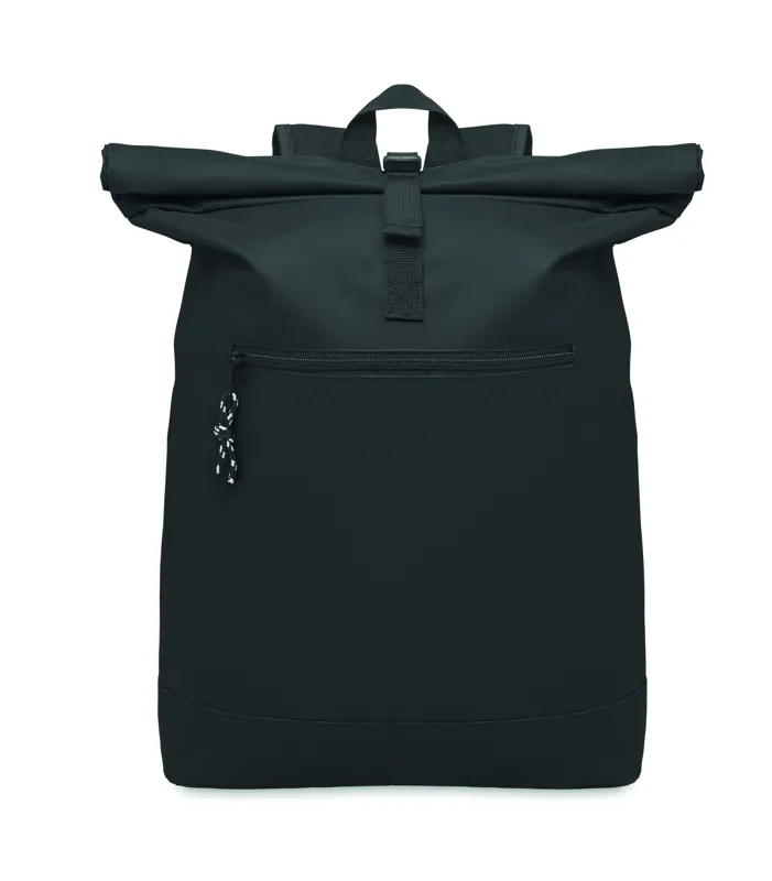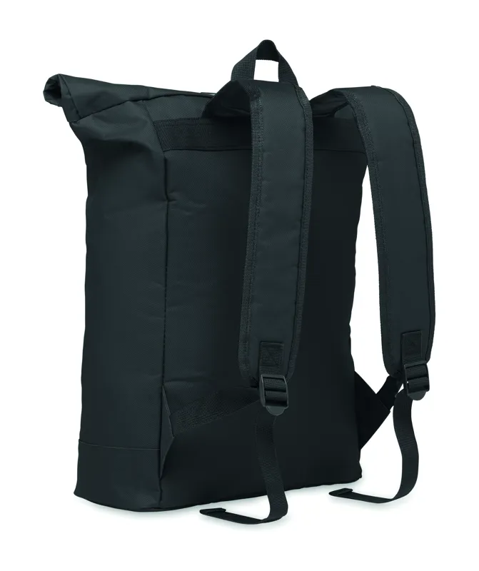 15 colos roll top csavart záródású laptop hátizsák 600D poliészterből, párnázott háttal és megerősített aljjal. Cipzáras elülső zseb. 210D bélés.