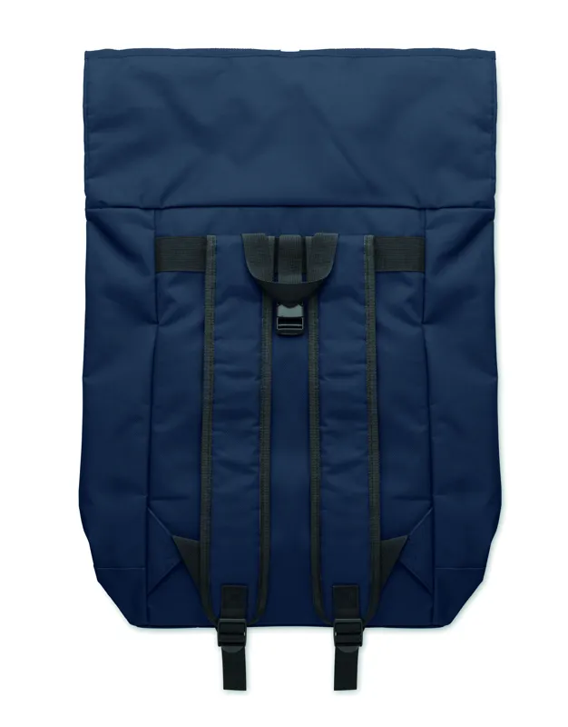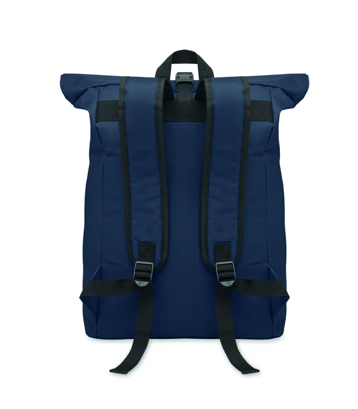 15 colos roll top csavart záródású laptop hátizsák 600D poliészterből, párnázott háttal és megerősített aljjal. Cipzáras elülső zseb. 210D bélés.