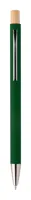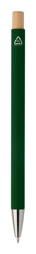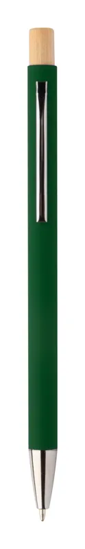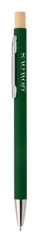 Újrahasznosított alumínium golyóstoll gumírozott felülettel, bambusz gombbal és króm részekkel. Speciális bevonattal rendelkezik, amely különlegesen fényessé teszi a gravírozott emblémát. Kék tollbetéttel szállítjuk.