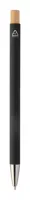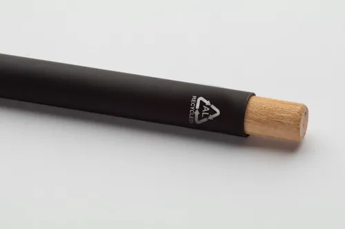 Újrahasznosított alumínium golyóstoll gumírozott felülettel, bambusz gombbal és króm részekkel. Speciális bevonattal rendelkezik, amely különlegesen fényessé teszi a gravírozott emblémát. Kék tollbetéttel szállítjuk.