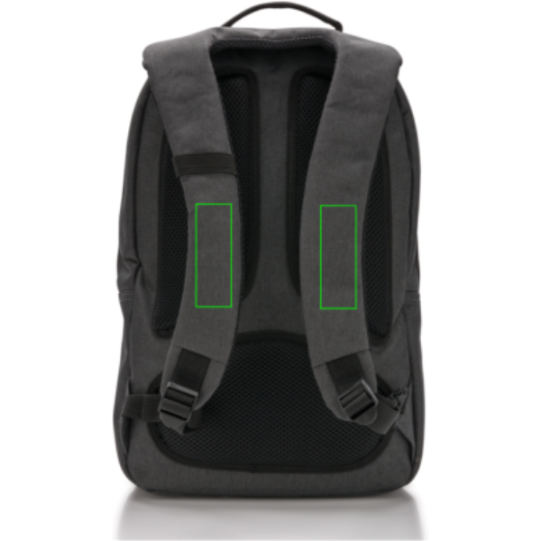 Tökéletes munkába vagy szabadidő során; ez a 600D poliészter hátizsák mutatós formájával okos megoldás kellékei tárolására. 15’’ laptop illetve tablet rekesszel is rendelkezik, valamint állítható pántokkal és párnázott, hálós hátrésszel. A hátizsák rendelkezik egy tágasabb rekesszel ami alkalmas például egy pár cipő vagy más sportkellékek tárolására.