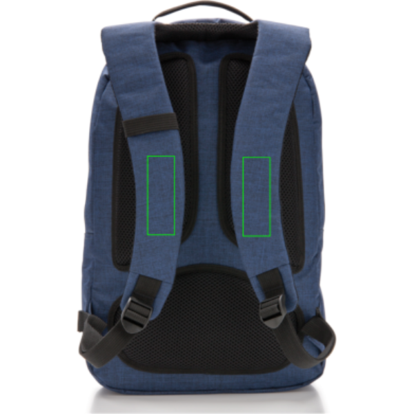 Tökéletes munkába vagy szabadidő során; ez a 600D poliészter hátizsák mutatós formájával okos megoldás kellékei tárolására. 15’’ laptop illetve tablet rekesszel is rendelkezik, valamint állítható pántokkal és párnázott, hálós hátrésszel. A hátizsák rendelkezik egy tágasabb rekesszel ami alkalmas például egy pár cipő vagy más sportkellékek tárolására.