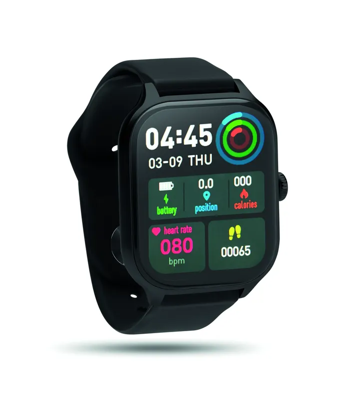 5.4 vezeték nélküli egészségügyi okosóra (health watch) cink ötvözetből, szilikon szíjjal. 2,01 colos érintős LCD kijelző. Újratölthető 180 mAh lítium-polimer elem. iOS és Android rendszerre egyaránt ingyenesen elérhető alkalmazással (HryFine) működik.