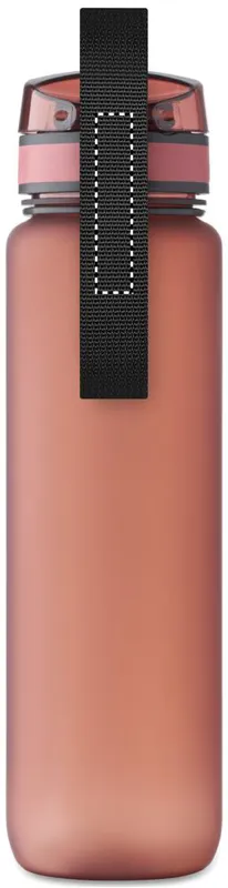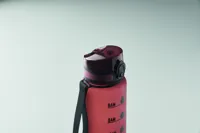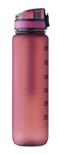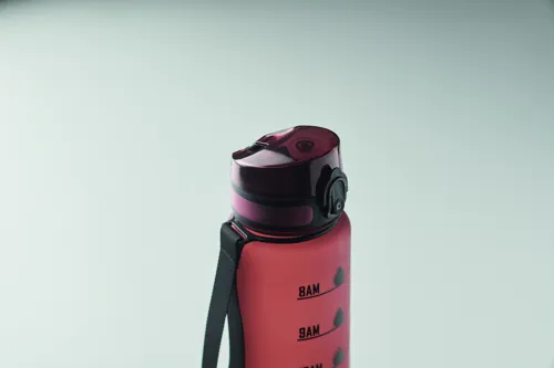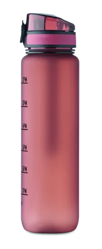 Sportkulacs RPET-ből, motivációs időjelzéssel, egy kézzel nyitható, felpattintható fedéllel, biztonsági zárral és hordfüllel. Szivárgásmentes. Űrtartalom: 1 liter.