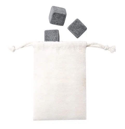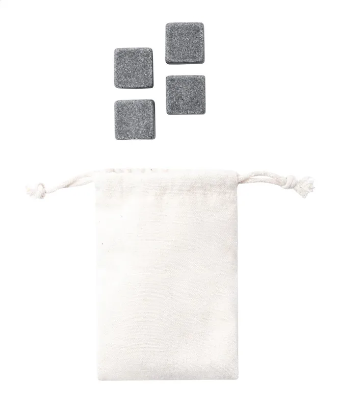 4 darabos újrahasználható, kő jégkocka szett pamut tasakban.
