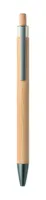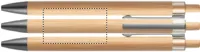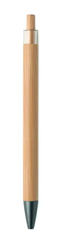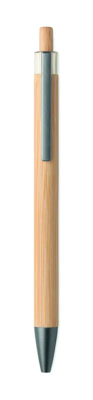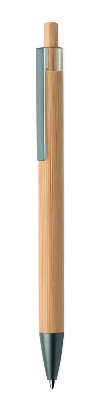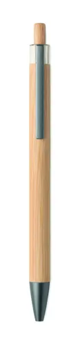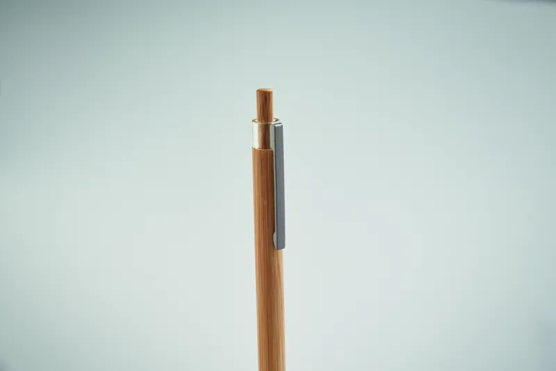 Nyomógombos golyóstoll bambusz tolltesttel és fém csíptetővel. Kéken író betéttel.