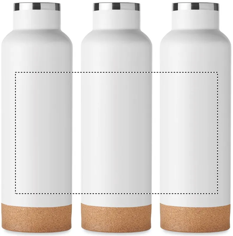 Duplafalú termoszpalack újrahasznosított rozsdamentes acélból, fogantyús fedéllel és parafa részletekkel ellátott alappal. Szivárgásmentes. Űrtartalom: 500 ml. (90% újrahasznosított rozsdamentes acél és 10% rozsdamentes acél).