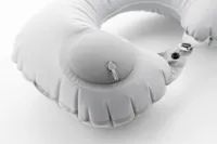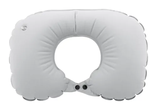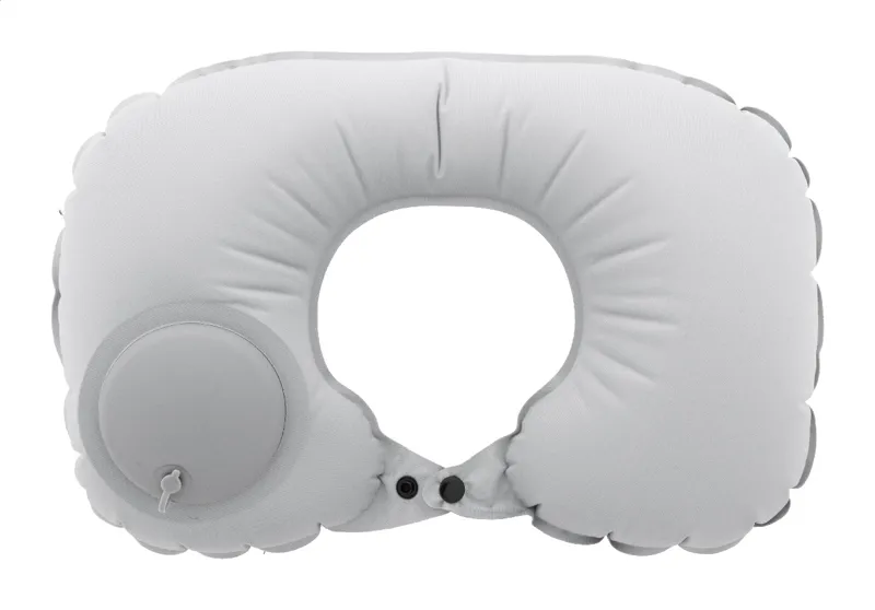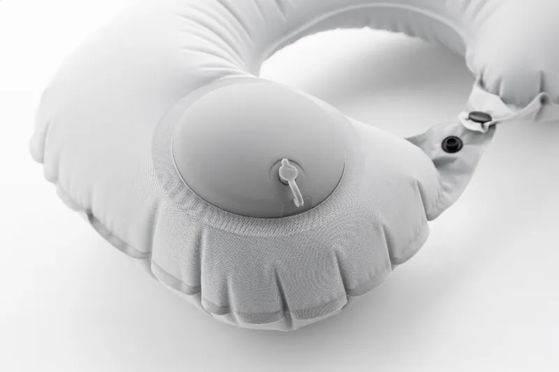 Felfújható RPET poliészter nyakpárna beépített pumpával a könnyű felfújás és leeresztés érdekében. Hozzáillő szövetből készült húzózsinóros tasakban. Megkülönböztető RPET címkével.