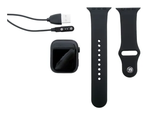 Többfunkciós vezeték nélküli okosóra fém házban, 1,85" TFT érintőképernyővel, 180 mAh újratölthető akkumulátorral és szilikon szíjjal. Számos egészségfigyelő és intelligens funkcióval rendelkezik, többek között pulzusszám-, vérnyomás- és oxigénszintmérő. Csatlakoztatható okostelefonokhoz egy ingyenes iOS és Android alkalmazással. Mágneses USB töltőkábellel szállítjuk.