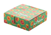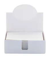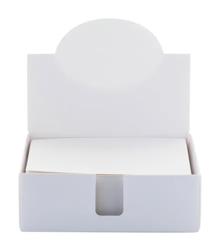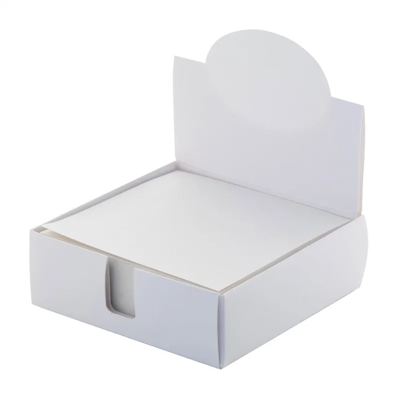 Egyedi gyártású jegyzettartó, 300 db újrahasznosított papírból álló jegyzettömbbel (90×90 mm). Az ár tartalmazza a full colour nyomtatást a tartón. Minimális rendelési mennyiség: 100 db.