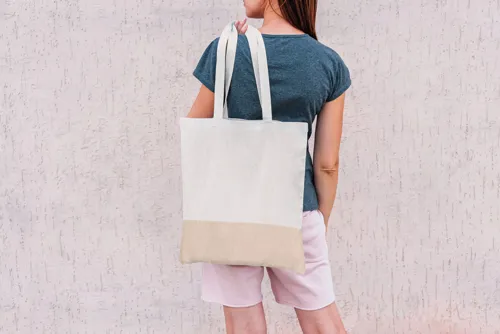 Juta és pamut anyagból készült bevásárlótáska hosszú hordfüllel, 120 g/m².