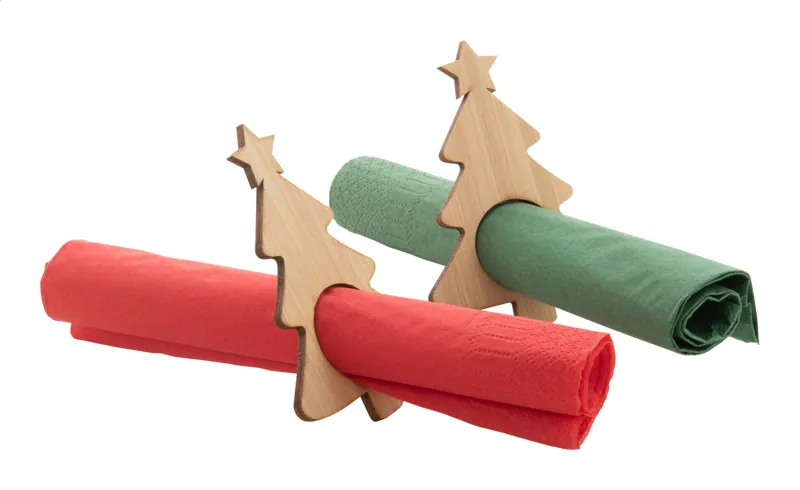 4 db karácsonyfa alakú szalvétagyűrű szett bambusz furnéból.
