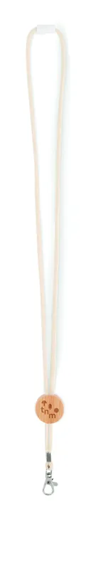 Pamut zsinóros nyakpánt kerek bambusz részlettel, fém klipsszel és biztonsági oldózárral. 50 cm hosszú. A bambusz természetes anyag, színében, mintázatában és méretében esetenként eltérő lehet.