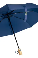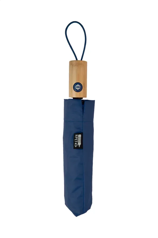 Automata (nyitás/zárás), szélálló, összecsukható esernyő 8 panellel, színben megegyező tasakban. Fém kerettel, üvegszálas vázzal és bordázattal és bambusz fogantyúval. 190T RPET pongee. Megkülönböztető RPET címkével.