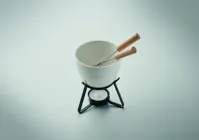 Kis kerámia fondü készlet két személyre. Két fanyelű fém villát tartalmaz. Teamécses nélkül szállítjuk. Űrtartalom: 240 ml.