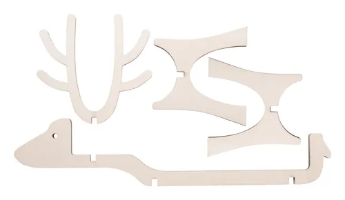 Rénszarvas formájú, rétegelt nyírfából készült bortartó állvány. Lapra szerelve szállítjuk.