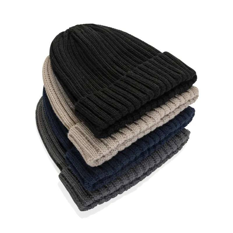 Újrahasznosított anyagokból készült, kihagyhatatlan sapka. Nagy bordás kötéssel és mandzsettával a modern megjelenés érdekében. AWARE™ nyomjelzővel, ami igazolja az újrahasznosított anyagok valódi használatát. Minden eladott Aware™ termék után 2%-kal támogatjuk a Water.org nonprofit szervezetet.