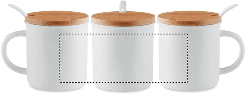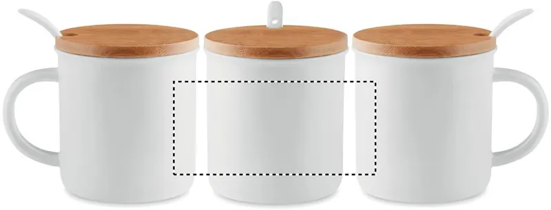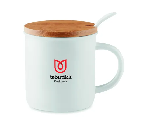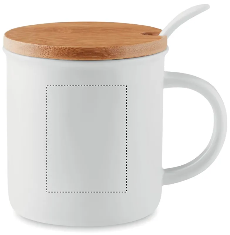 Porcelánbögre kanállal és bambusz fedéllel. Egyesével dobozba csomagolva szállítjuk. Űrtartalom 380 ml. A bambusz természetes anyag, színében, mintázatában és méretében esetenként eltérő lehet.