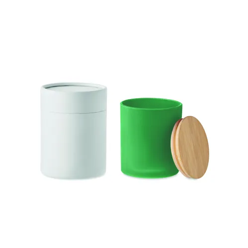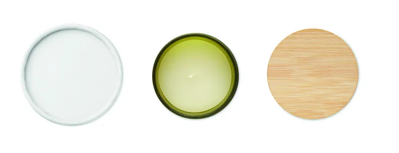 Növényi alapú illatgyertya bambuszfedeles matt üvegtartóban. 120 g. Égési idő: 20 óra. Hengeres papír ajándékdobozban szállítjuk. A bambusz természetes anyag, színében, mintázatában és méretében esetenként eltérő lehet.