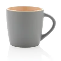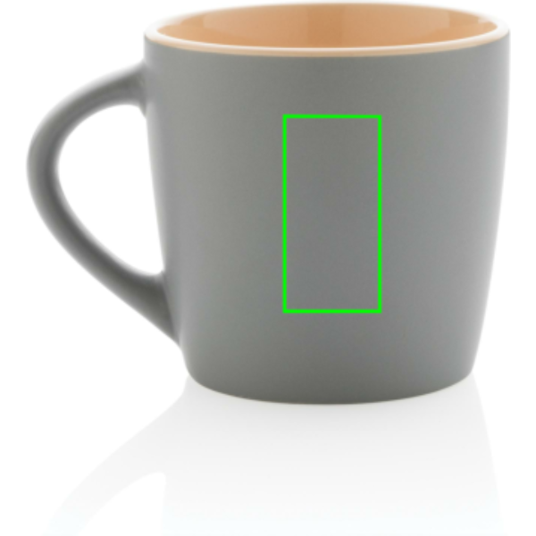 Kerámia bögre trendi dizájnnal, matt külső felülettel és belső színekkel díszítve. Mosogatógépben tisztítható, az EN12875-1 szabványnak megfelelően tesztelve (legalább 125 mosási ciklus minden dekorációs módszerhez). Kraft ajándékdobozban. Űrtartalma: 300 ml.