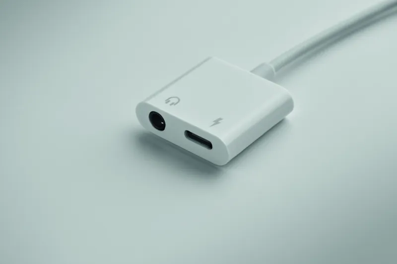 Többfunkciós USB C-típusú és 3,5 mm-es jack audio elosztó ABS-ből.