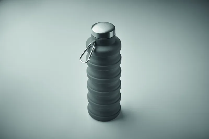 Összecsukható szilikon kulacs rozsdamentes acél fedéllel és alumínium karabinerrel. A karabiner hegymászásra, védőfelszerelés céljára nem alkalmas. Űrtartalom: 500 ml.