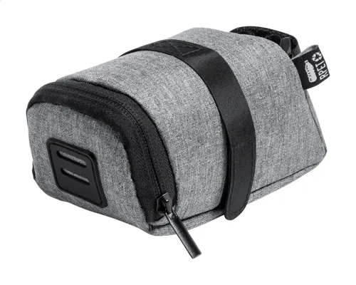 Párnázott, cipzáras, bicikli ülésre rögzíthető táska 600D RPET poliészterből, megkülönböztető RPET címkével.