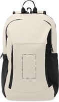 15 colos laptop hátizsák puha PU anyagból, párnázott háttal és rejtett cipzáras fő rekesszel. 1 cipzáras elülső zseb, 2 cipzáras oldalsó zseb elöl és 2 rugalmas hálós oldalzseb. 210D RPET béléssel.