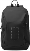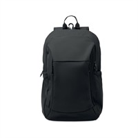 15 colos laptop hátizsák puha PU anyagból, párnázott háttal és rejtett cipzáras fő rekesszel. 1 cipzáras elülső zseb, 2 cipzáras oldalsó zseb elöl és 2 rugalmas hálós oldalzseb. 210D RPET béléssel.
