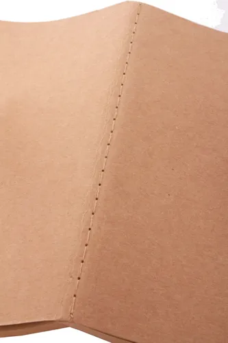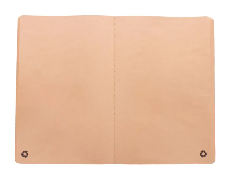 Újrahasznosított papír jegyzetfüzet varrott borítással és 60 újrahasznosított kraft papír lappal. A5 méretű.
