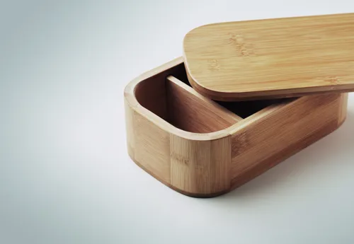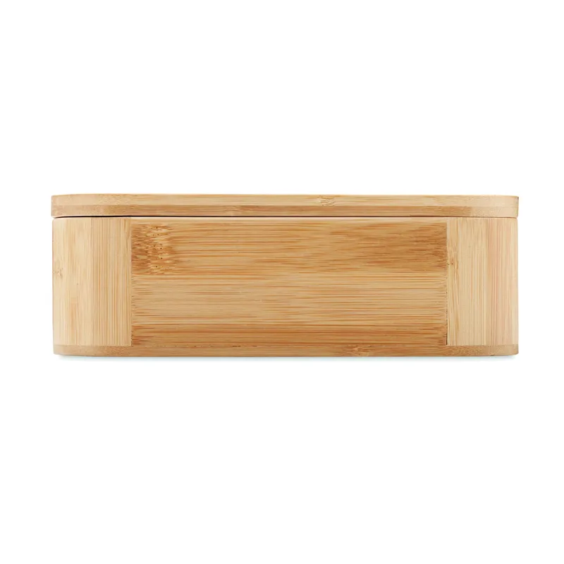 Bambusz uzsonnásdoboz kivehető elválasztóval és rugalmas nejlon rögzítőpánttal. Csak száraz ételek, például szendvicsek, snackek tárolására. Űrtartalom: 1000 ml. A bambusz természetes anyag, színében, mintázatában és méretében esetenként eltérő lehet.