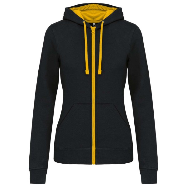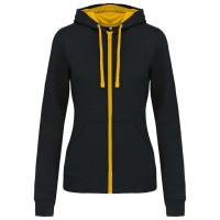 LADIES’ CONTRAST HOODED FULL ZIP SWEATSHIRT Fekete